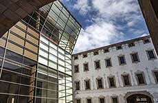 A Fundação Antoni Tàpies funciona em um chamativo edifício modernista com uma peculiar fachada de tijolos e ferro. Desenhado por Lluís Domènech i Montaner e construído entre 1881 e 1885 para abrigar a sede da antiga Editora Montaner i Simon, o edifício conta com uma peculiar obra de Tàpies, “Nuvens e Cadeira”, sobre sua fachada.